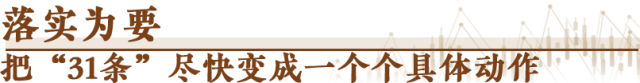 一分部署,九分落實?!?1條”的最后三條,就是關(guān)于組織實施的要求。圍繞“31條”,“1+N”配套措施里的“N”,即將陸續(xù)公布,令人期待。