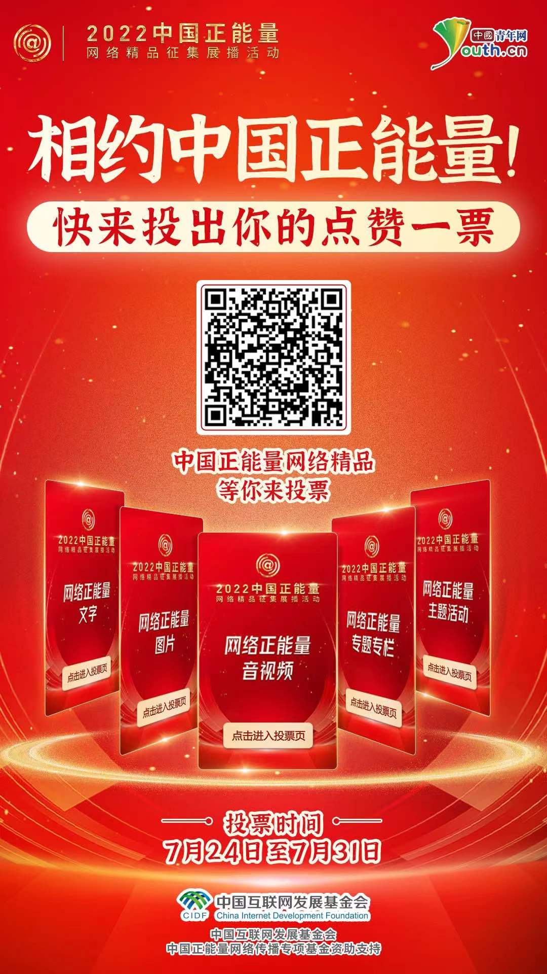 2022中國正能量網(wǎng)絡(luò)精品征集展播活動啟動網(wǎng)絡(luò)展播投票。約1100件作品從報(bào)送作品中脫穎而出進(jìn)入終選,它們謳歌偉大時代、樹立中國榜樣、點(diǎn)贊砥礪足音,營造清朗的網(wǎng)絡(luò)空間。網(wǎng)絡(luò)展播投票已接近尾聲,邀請廣大網(wǎng)友在線投出點(diǎn)贊一票,于正能量作品中汲取澎湃動能。(潘曉文 朱鈞有)