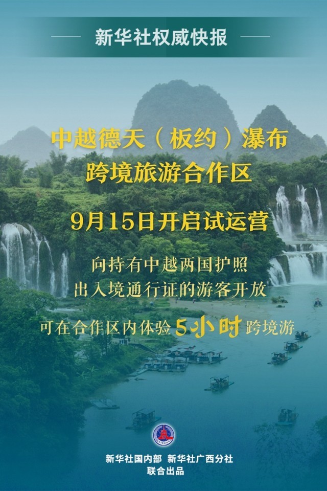 位于中國和越南交界地帶的德天(板約)跨國瀑布是亞洲第一、世界第四大跨國瀑布,中越德天(板約)瀑布跨境旅游合作區(qū)9月15日開啟試運(yùn)行。