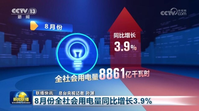 國家能源局今天發(fā)布用電量數(shù)據(jù)顯示,8月份,全社會(huì)用電量8861億千瓦時(shí),同比增長3.9%。第一、二、三產(chǎn)業(yè)用電量均呈現(xiàn)增長態(tài)勢,同比分別增長8.6%、7.6%和6.6%,經(jīng)濟(jì)運(yùn)行繼續(xù)延續(xù)回升向好態(tài)勢。