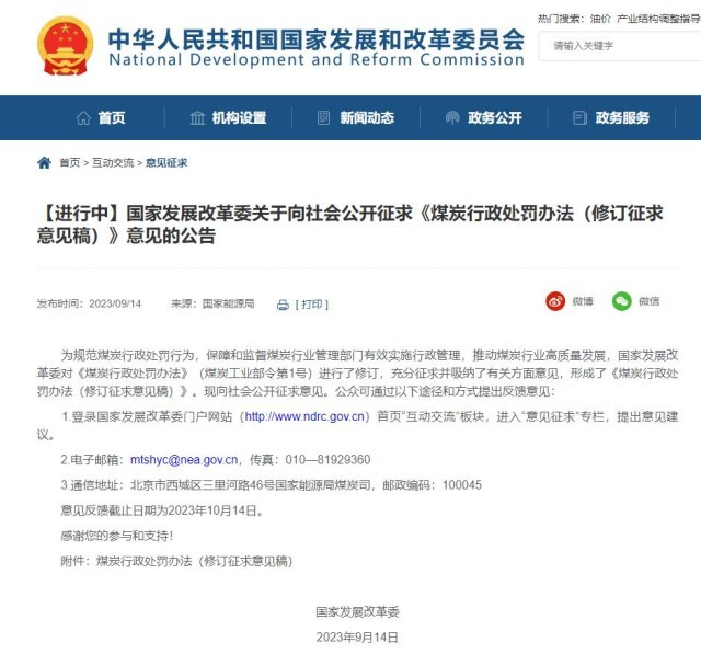 國(guó)家發(fā)改委進(jìn)一步規(guī)范煤炭行政處罰行為
