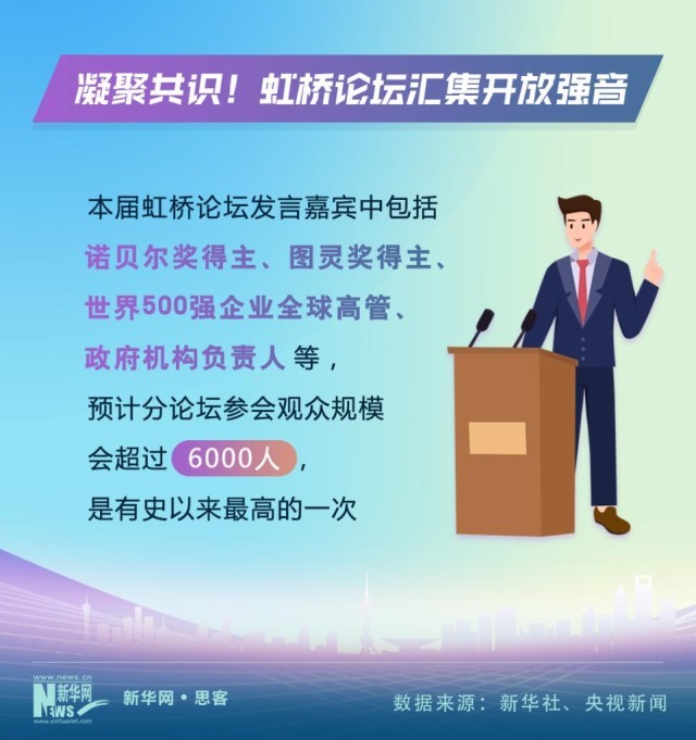 虹橋國際經(jīng)濟論壇是中國國際進口博覽會的重要組成部分。隨著進博會的“朋友圈”越來越大,虹橋論壇的影響力也不斷提升。今年的論壇以“攜手促發(fā)展,開放贏未來”為主題,發(fā)言嘉賓中包括了諾貝爾獎得主、圖靈獎得主、世界500強企業(yè)全球高管、政府機構(gòu)負責人等等,預(yù)計分論壇參會觀眾規(guī)模也會超過6000人,是有史以來最高的一次。