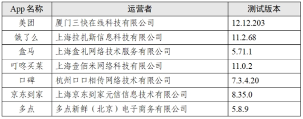 本次測試中國網(wǎng)絡(luò)空間安全協(xié)會選取了19家應(yīng)用商店累計下載量達(dá)到1億次的“餐飲外賣類”App,共計7款。