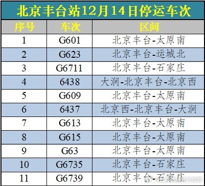 受降雪影響 北京西站、北京豐臺站12月14日60趟列車停運