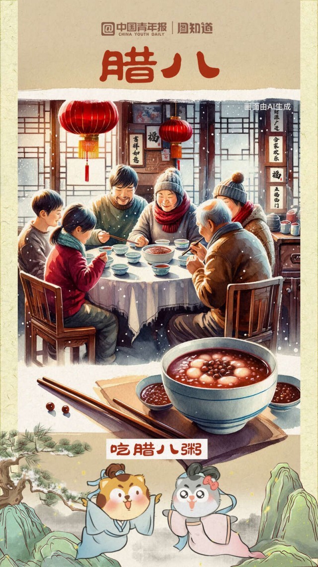 又是一年臘八時,道一聲萬事“粥”全?!坝煤摇⑺勺?、乳蕈、柿、栗之類為粥,謂之‘臘八粥’?!边@是南宋周密筆下的臘八粥。你的“臘八”餐桌想擺上哪些地方的美食?①湖南湖北的熏臘肉②北方地區(qū)的臘八蒜、臘八醋③陜西關(guān)中地區(qū)臘八面……過了臘八就是年,幾幅臘八美食與你一起迎接小年。