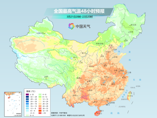 而江南、華南一帶的氣溫高點多出現(xiàn)在23日至25日,屆時不少地方最高氣溫將沖到30℃以上,暖熱程度遠超常年同期。大城市中,杭州25日最高氣溫或達32℃,打卡初夏體驗;福州24、25日最高氣溫可能達到34℃,距離高溫只有“一步之遙”。