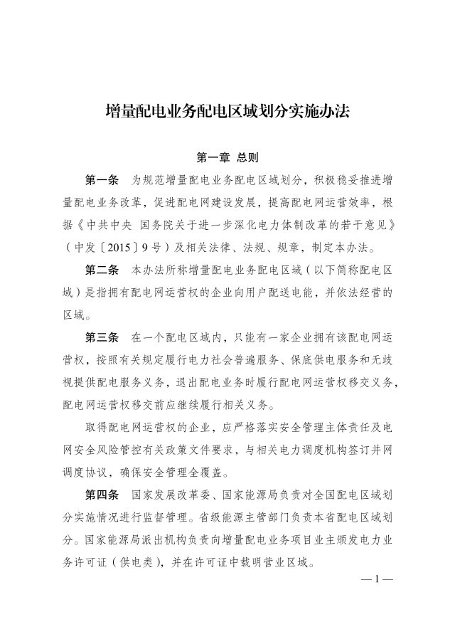 央視網(wǎng)消息:據(jù)國家發(fā)展改革委、國家能源局,為規(guī)范增量配電業(yè)務配電區(qū)域劃分,積極穩(wěn)妥推進增量配電業(yè)務改革,國家發(fā)展改革委、國家能源局修訂了《增量配電業(yè)務配電區(qū)域劃分實施辦法》。