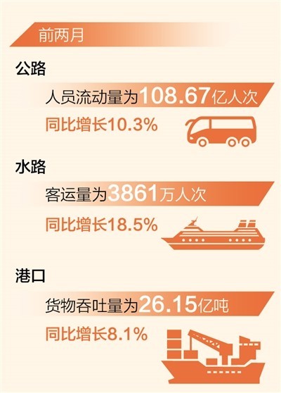 本報北京4月1日電 (記者韓鑫)記者近日從交通運輸部獲悉:前兩月,我國客運、貨運、港口吞吐量等交通運輸行業(yè)多項統(tǒng)計指標實現(xiàn)正增長。
