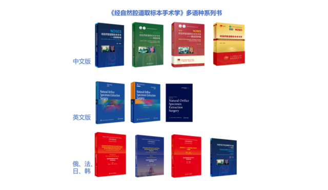 2023年,由人民衛(wèi)生出版社出版的以中文為主體,英、韓、日、俄、法相配套的五大語種NOSES手術(shù)系列專著《經(jīng)自然腔道取標本手術(shù)學》亮相第75屆法蘭克福國際書展,獲多個參展國高度評價。