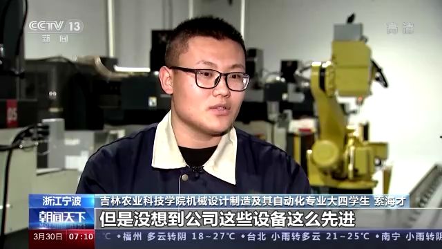 吉林農(nóng)業(yè)科技學(xué)院機(jī)械設(shè)計(jì)制造及其自動(dòng)化專業(yè)大學(xué)生 索海才:我之前在學(xué)校也見過一些設(shè)備,但是沒想到公司這些設(shè)備這么先進(jìn)。以前有一種坐井觀天的感覺,到這邊增長(zhǎng)了自己的見識(shí)。