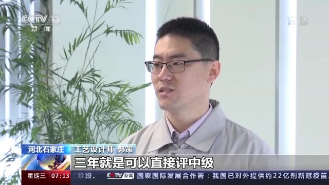工藝設(shè)計(jì)師 郭策:現(xiàn)在碩士研究生畢業(yè)之后,三年就可以直接評(píng)中級(jí),也就是說應(yīng)該是省了兩年時(shí)間。