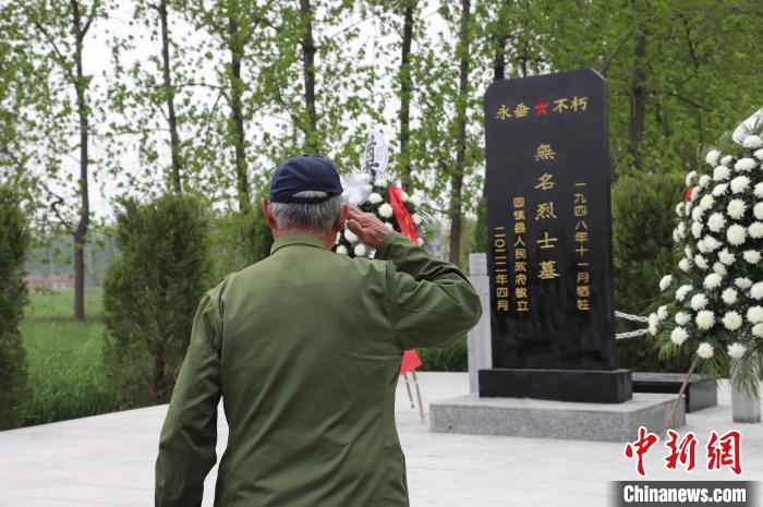 中新網(wǎng)合肥4月27日電 (劉浩 陶安杰 陳春怡 和鵬飛 王問(wèn))在安徽省蚌埠市固鎮(zhèn)縣湖溝鎮(zhèn)王洲村,淮海戰(zhàn)役30余名無(wú)名烈士合葬墓立碑儀式近日舉行,當(dāng)?shù)叵嚓P(guān)部門及普通百姓自發(fā)前往現(xiàn)場(chǎng),憑吊烈士忠魂,緬懷烈士功績(jī),傳承紅色基因,告慰先烈英靈。