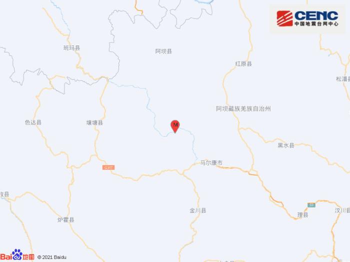 四川阿壩州馬爾康市發(fā)生3.3級(jí)地震 震源深度12千米