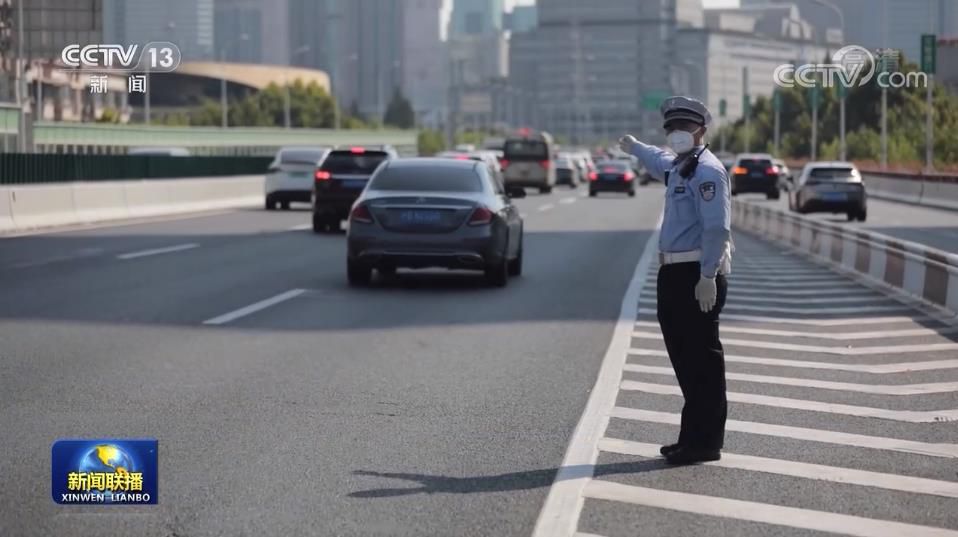上午10時(shí),上海氣溫已經(jīng)達(dá)到36度,早高峰的延安高架車流量很大,這條路是上海東西向交通主動脈,烈日下、滾滾車流中,交警浦佳慧已經(jīng)值守了3個(gè)多小時(shí)。