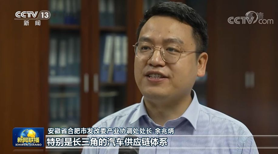 安徽省合肥市發(fā)改委產(chǎn)業(yè)協(xié)調(diào)處處長 余兆炳:特別是長三角的汽車供應(yīng)鏈體系,比如汽車內(nèi)外飾很多來自上海、浙江,汽車電子器件很多來自江蘇。正是因?yàn)楫a(chǎn)業(yè)一體化合作成效顯著,大大降低了我們的生產(chǎn)成本,也吸引了一批汽車行業(yè)龍頭落戶合肥。