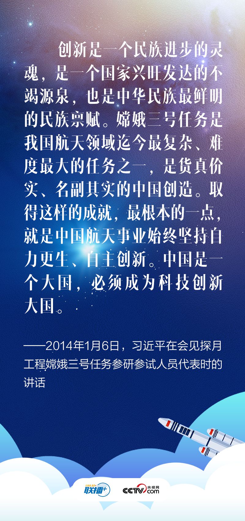 航天事業(yè)的發(fā)展關(guān)系國(guó)家的前途命運(yùn),體現(xiàn)我國(guó)的綜合國(guó)力及國(guó)際影響力?!白H凇碧交稹ⅰ版隙稹北荚?、“羲和”逐日、“夢(mèng)天”升空……黨的十八大以來(lái),以習(xí)近平同志為核心的黨中央在領(lǐng)導(dǎo)推進(jìn)新時(shí)代中國(guó)特色社會(huì)主義事業(yè)進(jìn)程中,高度重視和關(guān)心航天事業(yè)發(fā)展,高瞻遠(yuǎn)矚作出建設(shè)航天強(qiáng)國(guó)的重大戰(zhàn)略部署。央視網(wǎng)《聯(lián)播+》梳理相關(guān)重要論述,與您一同學(xué)習(xí)。