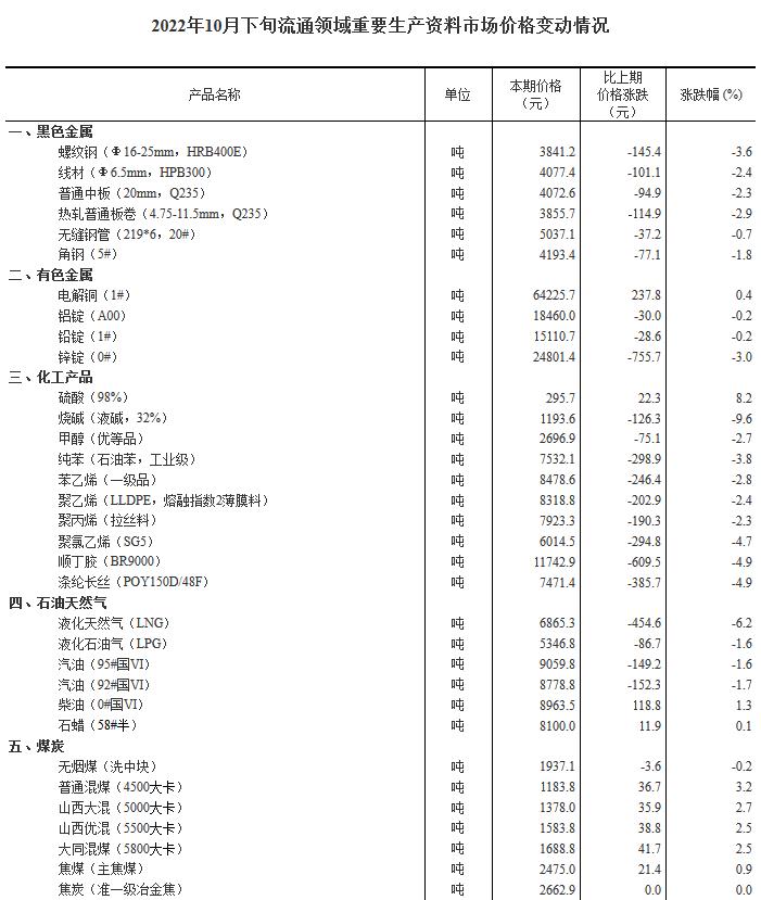 中新網(wǎng)11月4日電 國家統(tǒng)計局網(wǎng)站4日公布2022年10月下旬流通領域重要生產(chǎn)資料市場價格變動情況。據(jù)對全國流通領域9大類50種重要生產(chǎn)資料市場價格的監(jiān)測顯示,2022年10月下旬與10月中旬相比,15種產(chǎn)品價格上漲,32種下降,3種持平。其中,生豬(外三元)價格環(huán)比下跌0.7元,跌幅2.5%。(中新財經(jīng))
