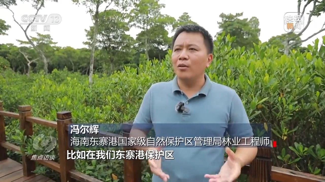 海南??谑辛謽I(yè)局局長、林業(yè)高級工程師 錢軍:在東寨港區(qū)域,我們修復(fù)了4783畝的紅樹林。通過對一系列生態(tài)修復(fù),保護好紅樹林,也讓子孫后代享受保護紅樹林帶來的紅利。