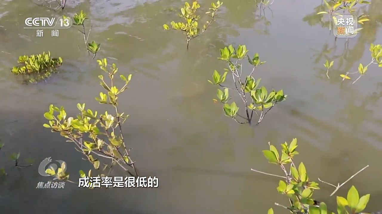 海南東寨港國家級自然保護區(qū)管理局林業(yè)工程師 馮爾輝:紅樹林胚軸要在母樹上發(fā)育成一個個體,然后再掉下來,掉到海水里面隨波逐流,成活率是很低的。