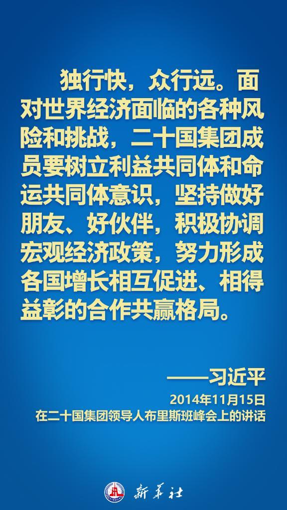 自2013年以來,習(xí)近平主席出席歷次二十國集團峰會,為攜手促進世界經(jīng)濟強勁、可持續(xù)、包容和平衡增長提供中國方案,為完善全球經(jīng)濟治理貢獻中國智慧。