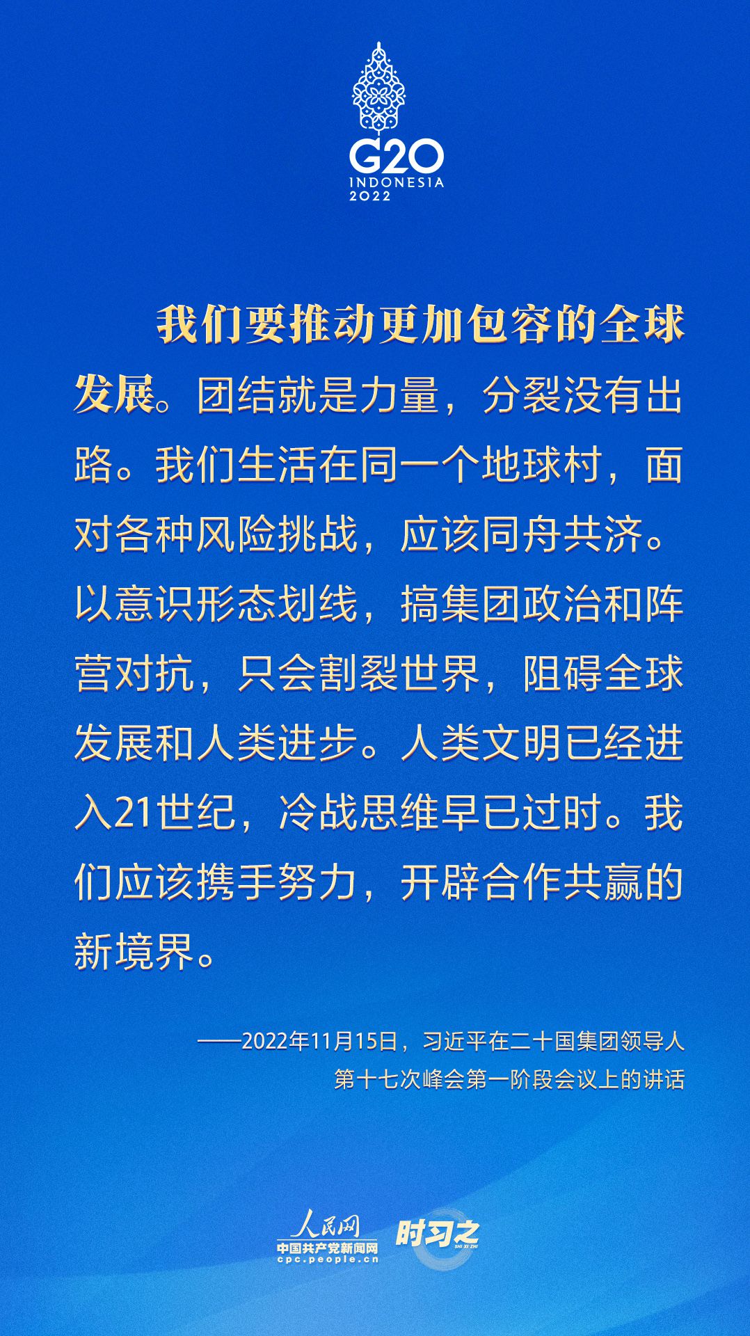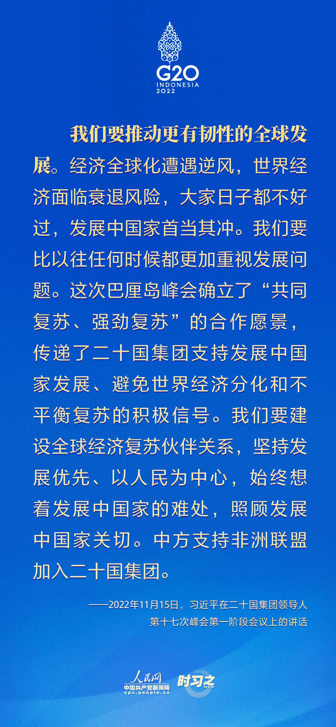 當(dāng)?shù)貢r(shí)間11月15日,二十國集團(tuán)領(lǐng)導(dǎo)人第十七次峰會(huì)在印度尼西亞巴厘島舉行。國家主席習(xí)近平出席并發(fā)表題為《共迎時(shí)代挑戰(zhàn) 共建美好未來》的重要講話。