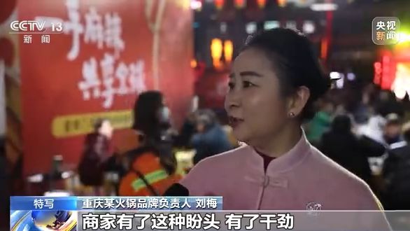 重慶市商務(wù)委員會(huì)服務(wù)業(yè)發(fā)展處副處長 張毓益:這一周來看,還是有一點(diǎn)點(diǎn)超出我們的預(yù)期,這也和我們重慶人喜歡熱鬧,喜歡大家出來聚會(huì)這種性格有關(guān)系。這一點(diǎn)也是讓我們看到了迅速走出前段時(shí)間的經(jīng)營困境非常好的一個(gè)利好信號(hào)。