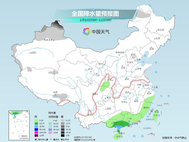 降水方面,今天,我國降水區(qū)域仍集中在一南一北:新疆北部及華南地區(qū),新疆多地有強降雪現身,廣東、廣西的部分地區(qū)或有大雨。具體來看,今天,內蒙古東北部、新疆北部和西部山區(qū)等地部分地區(qū)有小到中雪,其中,新疆北疆北部等地部分地區(qū)有大到暴雪(10~19毫米)。江南東南部、華南大部、臺灣島等地部分地區(qū)有小到中雨,其中,廣西東南部沿海、廣東西南部等地部分地區(qū)有大雨。