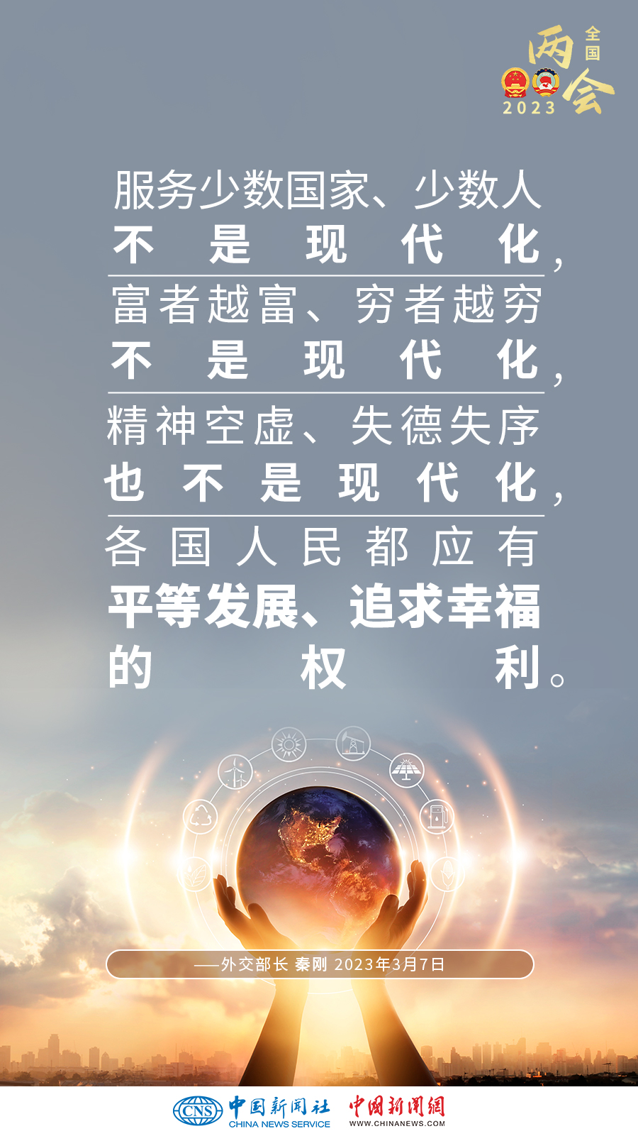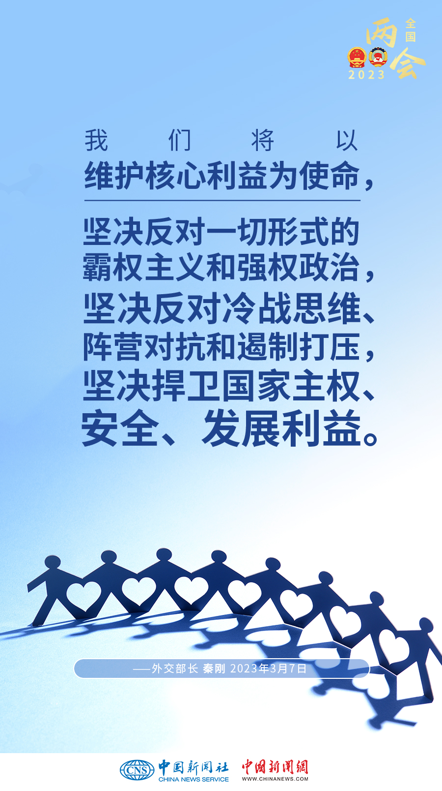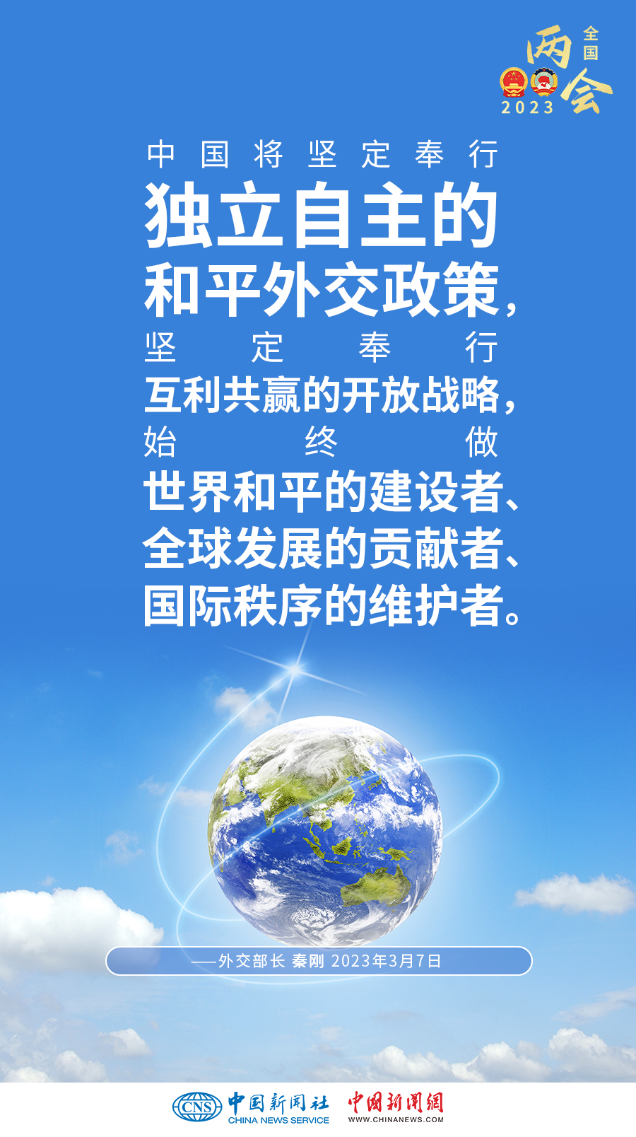3月7日上午,十四屆全國人大一次會(huì)議新聞中心舉行記者會(huì),邀請(qǐng)外交部長秦剛就“中國外交政策和對(duì)外關(guān)系”相關(guān)問題回答中外記者提問。一組海報(bào)帶您概覽記者會(huì)上的“中國外交好聲音”——