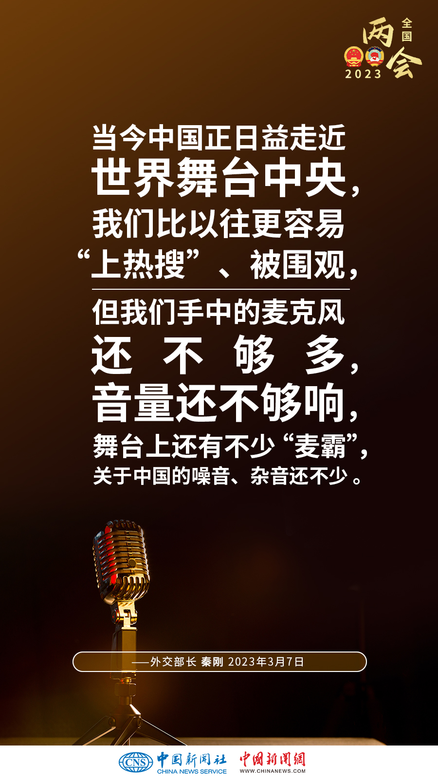 秦剛:當今中國正日益走近世界舞臺中央,我們比以往更容易“上熱搜”、被圍觀,但我們手中的麥克風還不夠多,音量還不夠響,舞臺上還有不少“麥霸”,關(guān)于中國的噪音、雜音還不少。提升中國的國際話語權(quán),當代中國青年義不容辭。