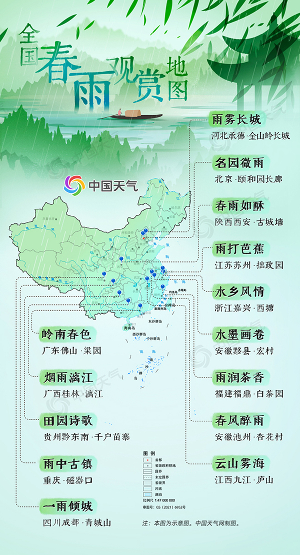 春雨的形態(tài)千變?nèi)f化,人們寄托于春雨的情思也各不相同,可唯一不變的,是春雨帶來的希望。這個春天,你想去哪里邂逅一場春雨呢?(中國天氣網(wǎng) 策劃/張方麗 設(shè)計/張莉 數(shù)據(jù)支持/閔裕秋)