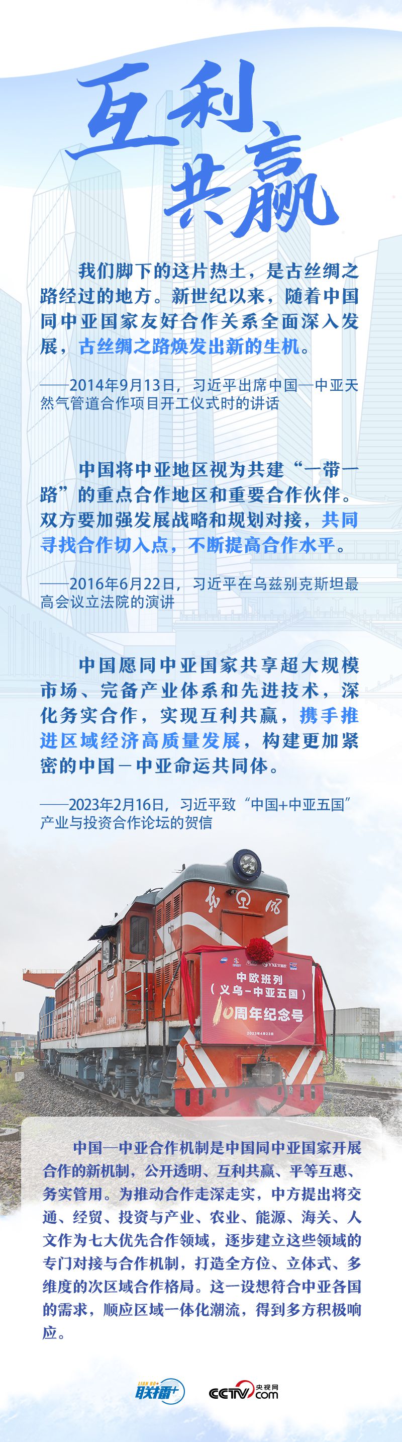 習(xí)主席把中國同中亞五國合作的成功密碼總結(jié)為“相互尊重、睦鄰友好、同舟共濟、互利共贏”。他強調(diào),這四項原則是在合作中積累的寶貴經(jīng)驗和共同財富,是中國同中亞國家關(guān)系行穩(wěn)致遠的政治保障,也是中國同中亞國家友好交往繼往開來的力量源泉。央視網(wǎng)《聯(lián)播+》與您一起學(xué)習(xí)。