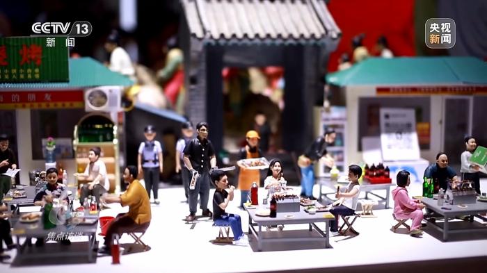 要說本次文博會最吸引人的展位,淄博燒烤算一個??墒?,燒烤怎么進(jìn)了文博會?原來,這是一個2.8米長的軟陶泥塑微縮景觀,生動還原了淄博燒烤的現(xiàn)實場景。此外,展臺上的琉璃燒烤大餐也吸引了不少人拍照打卡。當(dāng)然,現(xiàn)場還是有可以吃的美食——大名鼎鼎的山東煎餅。