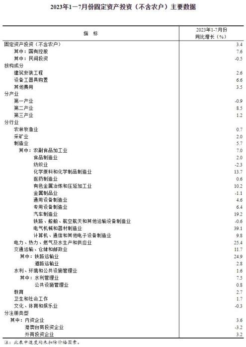 國家統(tǒng)計(jì)局:1—7月份全國固定資產(chǎn)投資增長3.4%