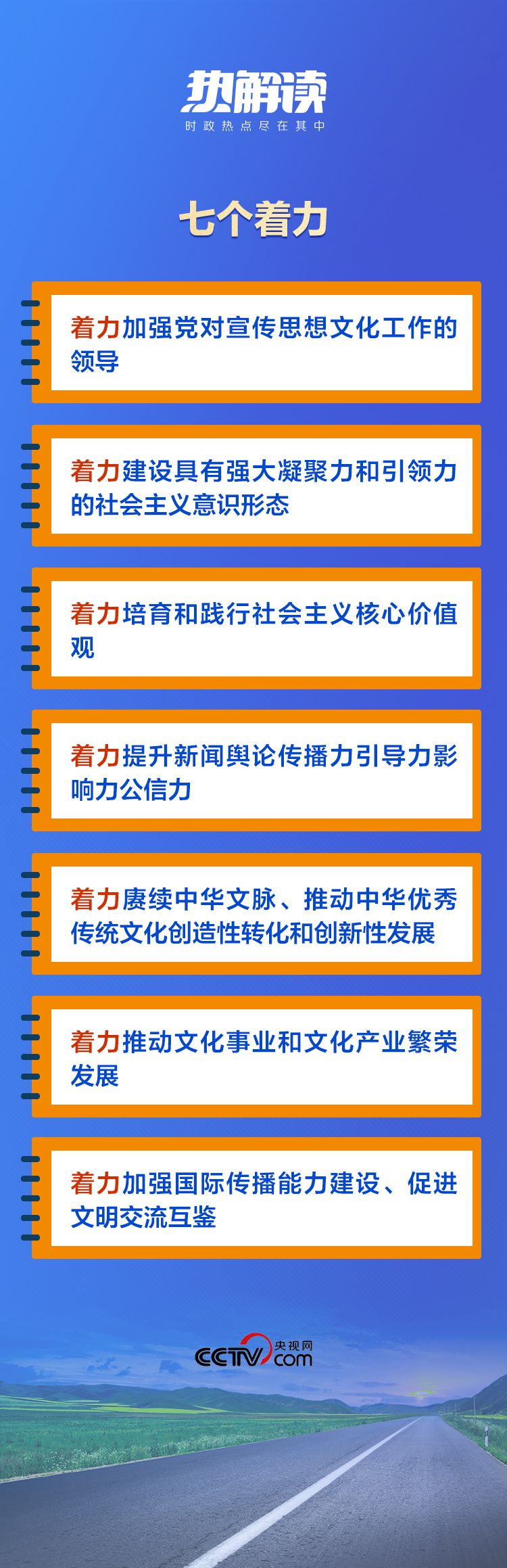 在這次對宣傳思想文化工作的重要指示中,總書記提出了“七個著力”的重要要求,為新時代文化建設明確了路線圖和任務書。