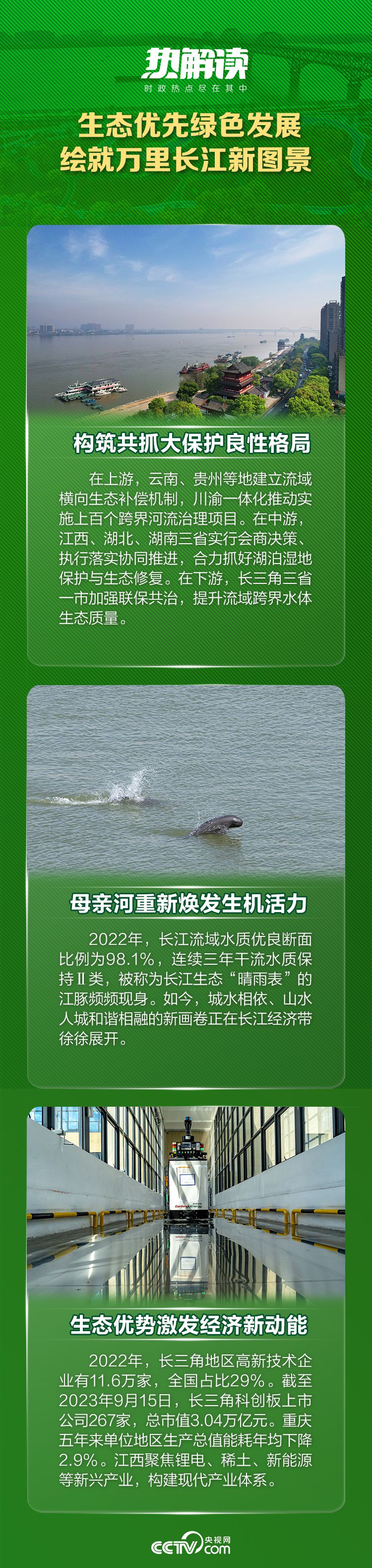 從“共抓大保護(hù)、不搞大開發(fā)”,到承擔(dān)起“主戰(zhàn)場(chǎng)、主動(dòng)脈、主力軍”的新歷史使命,生態(tài)優(yōu)先、綠色發(fā)展的理念已在長(zhǎng)江經(jīng)濟(jì)帶沿線各省市落地生根。