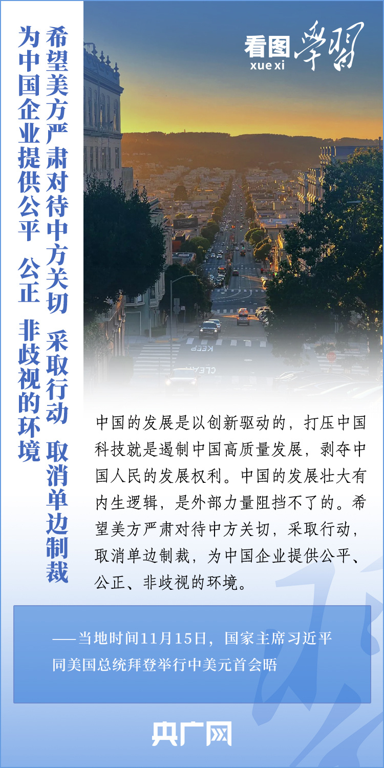 當(dāng)?shù)貢r間11月15日,國家主席習(xí)近平在美國舊金山斐洛里莊園同美國總統(tǒng)拜登舉行中美元首會晤。兩國元首就事關(guān)中美關(guān)系的戰(zhàn)略性、全局性、方向性問題以及事關(guān)世界和平和發(fā)展的重大問題坦誠深入地交換了意見。習(xí)近平主席指出,大國競爭解決不了中美兩國和世界面臨的問題。這個地球容得下中美兩國。中美各自的成功是彼此的機遇。一起來學(xué)習(xí)!
