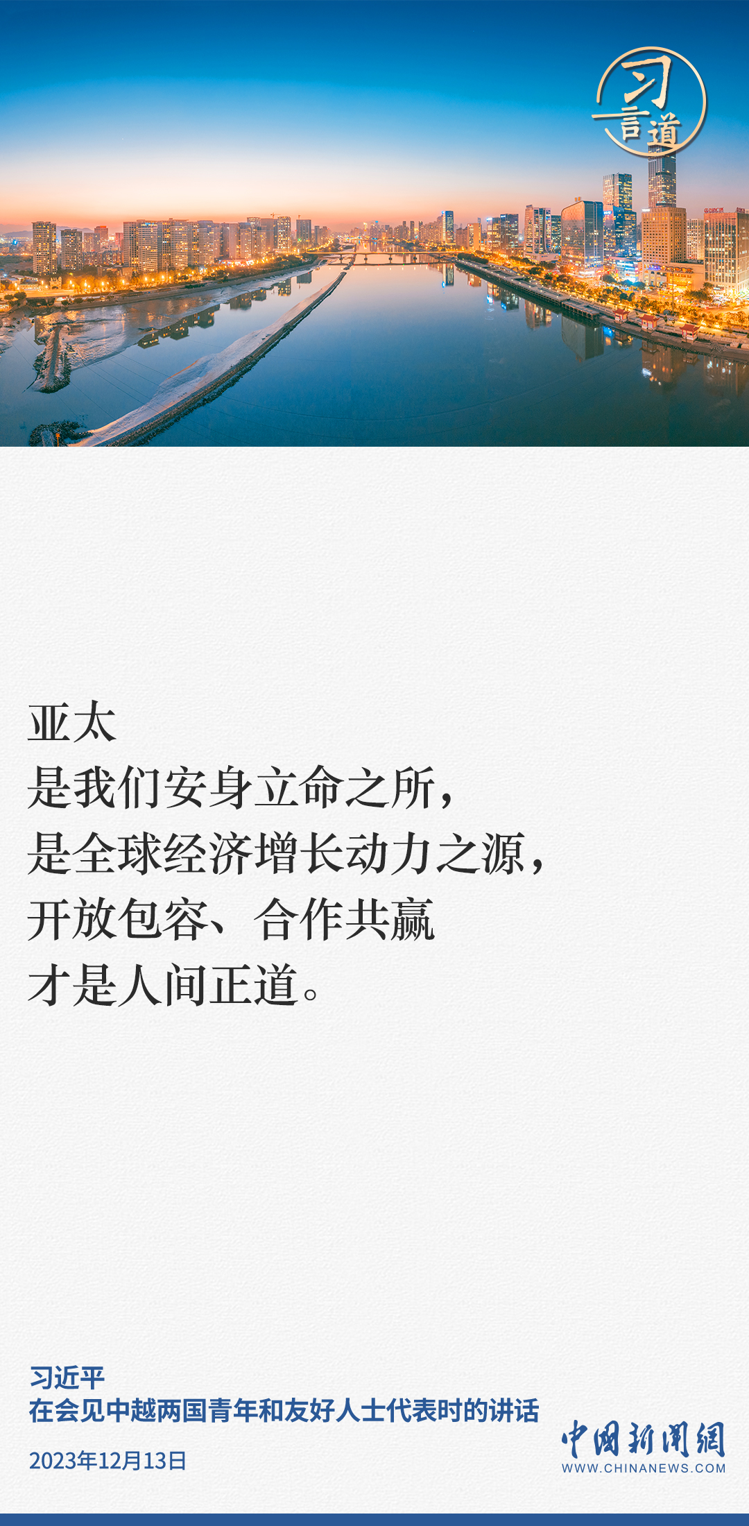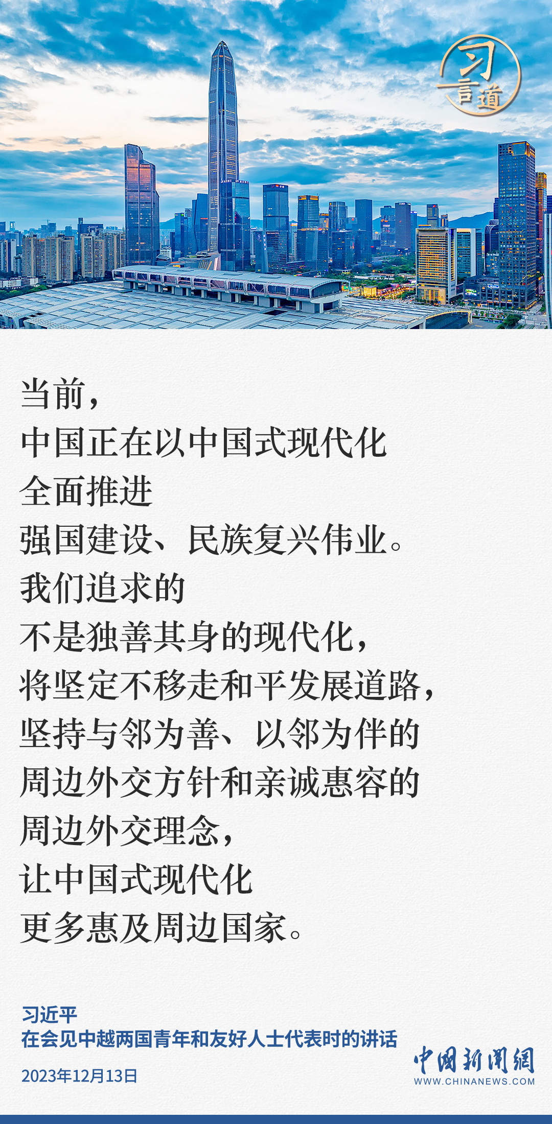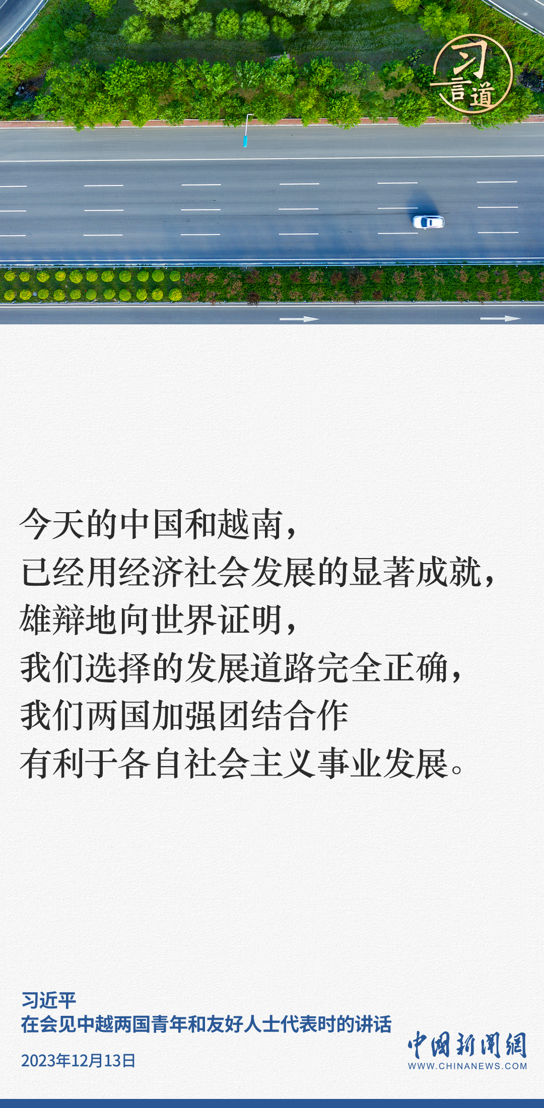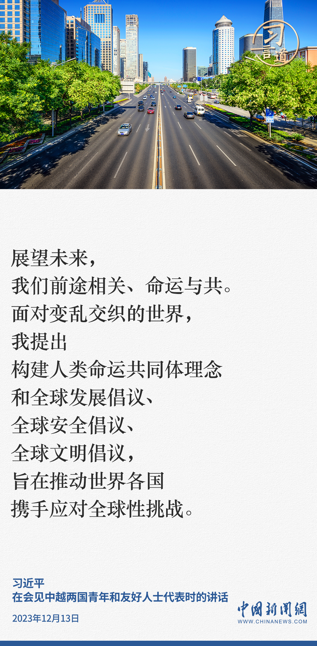 當?shù)貢r間12月13日下午,中共中央總書記、國家主席習近平和夫人彭麗媛在河內(nèi)同越共中央總書記阮富仲夫婦共同會見中越兩國青年和友好人士代表。習近平指出——