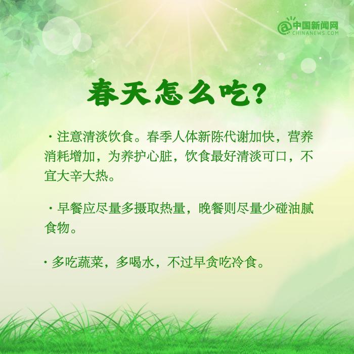 春天是萬物復(fù)蘇的季節(jié),也是調(diào)養(yǎng)身體的好時節(jié)。①每天保證6~8小時的睡眠,避免熬夜;②適當(dāng)進(jìn)行一些戶外活動,曬太陽、踏青賞景等;③不過早減衣,穿衣注意下厚上?。虎茏⒁馇宓嬍?,多吃蔬菜,多喝水……春季養(yǎng)生要注意什么?詳戳↓↓