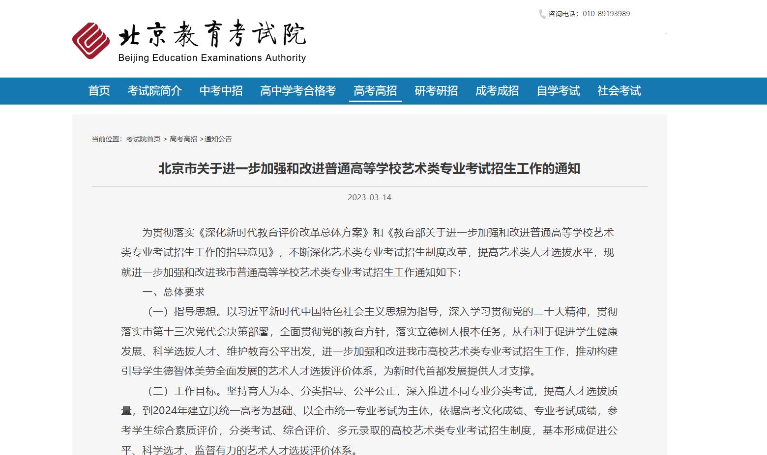 根據(jù)《北京市關(guān)于進(jìn)一步加強和改進(jìn)普通高等學(xué)校藝術(shù)類專業(yè)考試招生工作的通知》(以下簡稱《通知》),高校藝術(shù)類專業(yè)招生實行“文化素質(zhì)+專業(yè)能力”的考試評價方式,文化素質(zhì)使用高考文化課考試成績,專業(yè)能力使用藝術(shù)專業(yè)能力考試成績。
