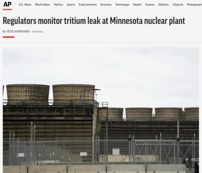 據(jù)美聯(lián)社報道,Xcel Energy公司于2022年11月向州和聯(lián)邦當(dāng)局報告了含氚水的泄漏事故,但事故信息直到本周四之前都未對外公布。