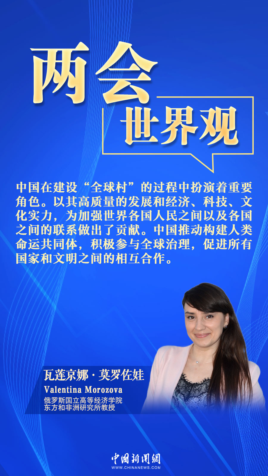 中新網(wǎng)3月16日電(張乃月)近日,俄羅斯國立高等經(jīng)濟(jì)學(xué)院東方和非洲研究所教授莫羅佐娃接受中新網(wǎng)采訪時(shí),肯定了中國建設(shè)性地參與全球治理的態(tài)度,關(guān)注中國以自身高質(zhì)量發(fā)展和經(jīng)濟(jì)、科技、文化實(shí)力,為加強(qiáng)世界各國人民、各國間的聯(lián)系做出貢獻(xiàn)。