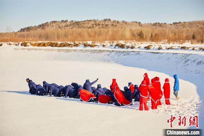 “傻嘟嘟”團隊在雪地拍攝“火箭發(fā)射”視頻 黑龍江省塔河縣文旅局供圖
