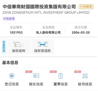 中新財經(jīng)還以“華商財團(tuán)”為關(guān)鍵詞通過企查查APP進(jìn)行搜索,出現(xiàn)“中匯華商財團(tuán)投資管理(北京)有限公司”、“中信華商財團(tuán)國際投資集團(tuán)有限公司”兩項最為相關(guān)的結(jié)果。前者為注冊資本1000萬元人民幣的小微企業(yè),后者則被標(biāo)注“已告解散”。
