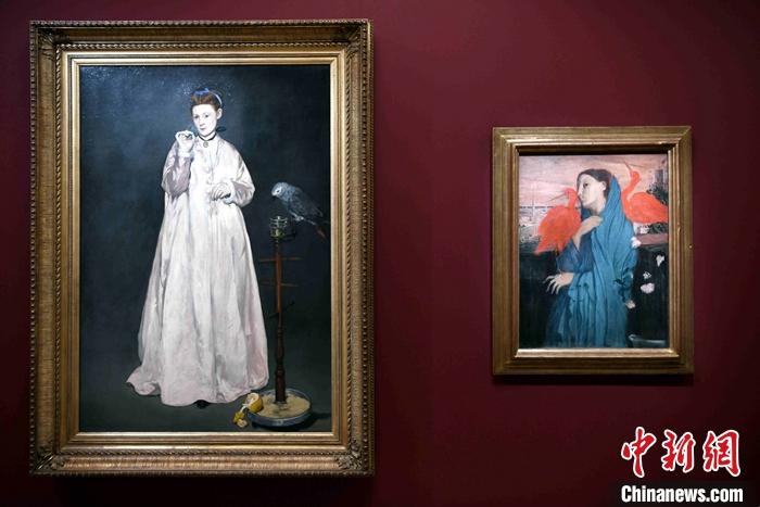 圖為馬奈與德加分別創(chuàng)作的兩幅女性肖像畫(huà)在并列展出。 中新社記者 李洋 攝