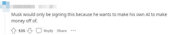但也有人懷疑馬斯克的動機,“馬斯克之所以會簽署它,因是為他想用自己的人工智能來賺錢。”