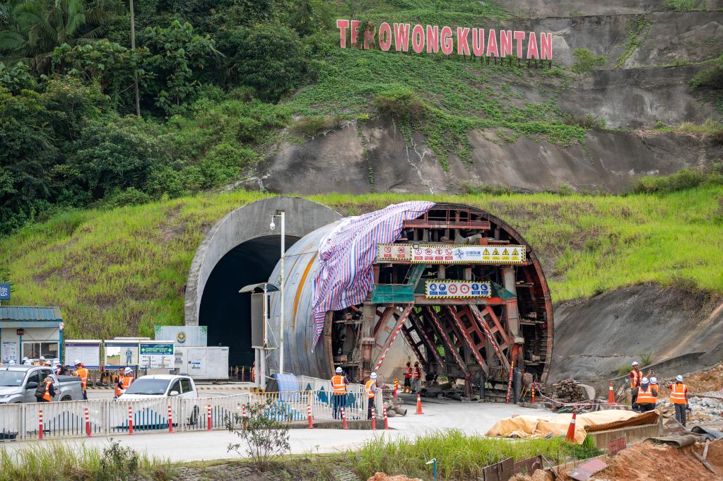 這是3月6日在馬來西亞彭亨州拍攝的馬來西亞東海岸鐵路(馬東鐵)關丹隧道施工現(xiàn)場。