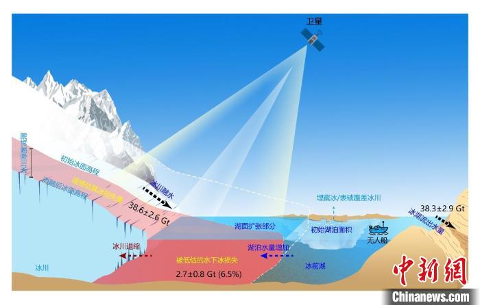 論文第一作者和共同通訊作者張國(guó)慶研究員介紹說(shuō),數(shù)字高程模型(DEM)廣泛用于估算全球冰川質(zhì)量損失,但該方法只能觀測(cè)到冰川表面和水面,不能揭示發(fā)生在冰前湖泊水面以下的冰川質(zhì)量損失。