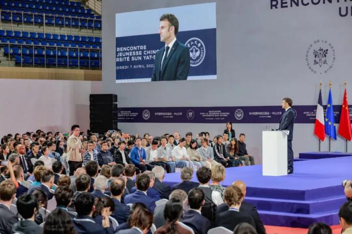 馬克龍在演講中說,希望青年人能夠共同應(yīng)對當(dāng)今世界包括氣候變化、生物多樣性、科技等方面的挑戰(zhàn)?!爱?dāng)今經(jīng)濟(jì)增長的挑戰(zhàn)尤其是脫碳增長的挑戰(zhàn)非常大,對于青年學(xué)子來說通過研究、創(chuàng)新應(yīng)對挑戰(zhàn)非常重要。”他提到,中山大學(xué)中法核工程與技術(shù)學(xué)院為此開展了大量的相關(guān)工作。