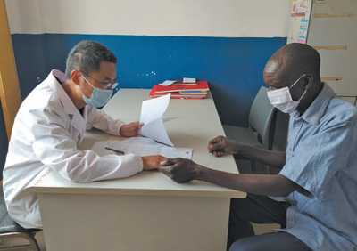 中國醫(yī)療隊醫(yī)生在中烏友好醫(yī)院出診。