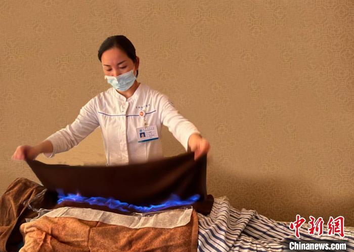 醫(yī)護(hù)人員對(duì)患者進(jìn)行火龍灸?!『贾菔兄嗅t(yī)院供圖